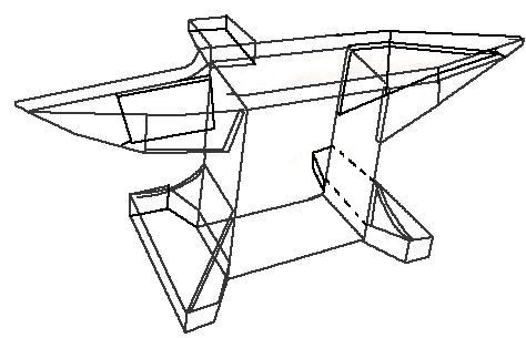 My first first large anvil I built by welding 7 steel support ribs (see the pictures in the attachments) to a curved hexagonal base that was open in the middle.