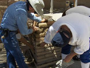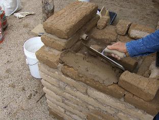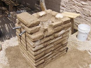 Weekend #2 (7/31/10). Today we will finish the adobe work, making the top rim. This morning (about 9 AM), we are blessed by overcast and mid-eighties temperature. Humidity is very high, so the mortar will stay workable a long time.
