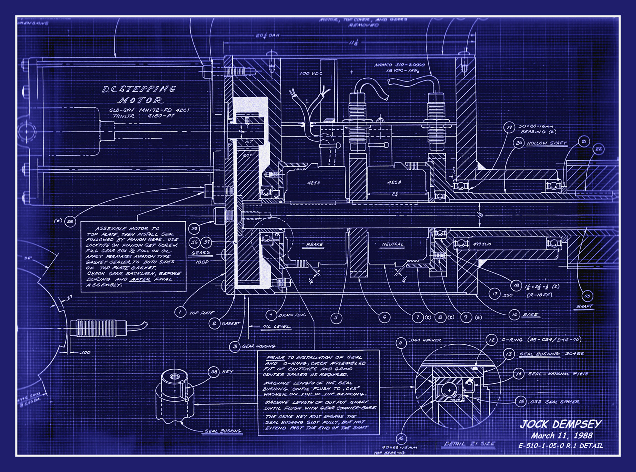 The hand drawn assembly drawing above is an example of an engineering drawing on mylar grid vellum.