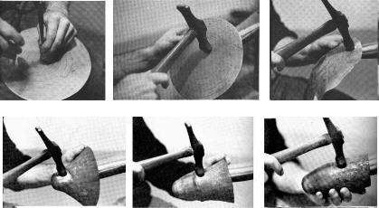 Steps in raising a vessel. Raising/repousse' hammer in use.