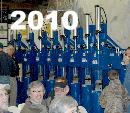 | | | | The Big BLU crew team striking to forge a 3 inch ball after the demonstrator started on the Chambersburg power hammer which has an electrical failure during the demo. From the 2009 BigBLU NC-ABANA meeting.