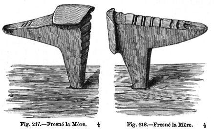 Above, an engraving of a Bronze Age anvil found in France at Fresné la Mère from,