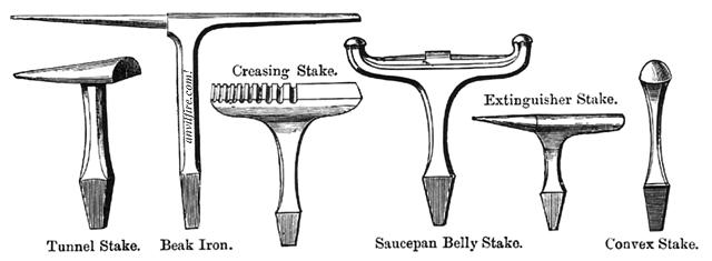 Originally used for soft metal work, stakes evolved into tools with hard steel faces for working iron.