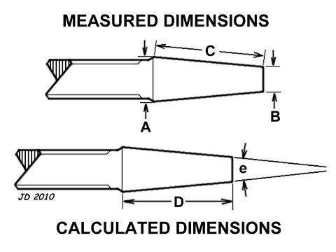 Often the ends of the taper are crooked or incomplete. As long as the distance "C" between the two measurements is given we can determine the angle.