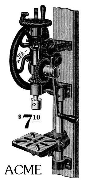 Two Acme hand crank drill presses sold by Sears in the early 1900's.