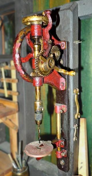 RIGHT ABOVE: Miniature hand crank drill press from the Kremer Miniature Blacksmith Shop, approximately 6" (~152 mm) tall.