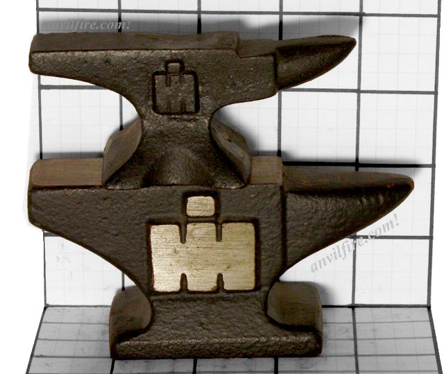 Two International Harvester anvils. This is slightly different than those in the stack due the International Harvester logo requiring custom work. However, it is still applied to the same anvils as above. From the finish both seem to be from the same source.
