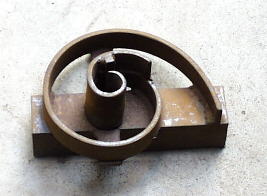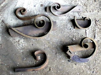 Two Scroll jigs. The first was used to bend 7/16" square, the second 3/8" x 1" flat bar.