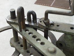 The end pins are knurled to help grip the bar and are mounted through excentric holes so that the jig can be adjusted for different bar sizes.