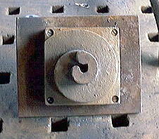 The scroll is torched from a piece of 1/2" (13mm) plate and then pushed out.