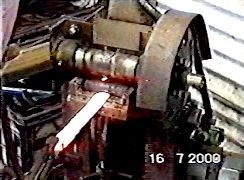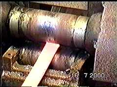 | The steel billet is inserted into the rolls, the rolls clamped onto the billet and it then feeds toward Hugh and out of the rolls. |