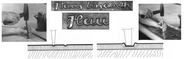 Translated from the German it is flawless English. Steines clearly defines the differences between processes of repousse' and chasing. There is none, other than, repousse' is done from the back and the other, chasing is done from the front. Most detailed pieces are both, the working being done from both sides.Repousse Samples