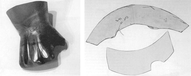 Among modern Armourers this book is simply as "TOMAR", prounounced like it sounds. In the short time since its publication it has become the bible of modern armor reproduction. Thee are hundreds of clear photos and illustrations.Throughout the book there are many excellent photos of both historical and reproduction pieces with annotations. The piece to the left is an example. The book starts with a discussion of the history of armour making centers and the difference between historical repairs, reproductions and weekend warrior armour such as for SCA use. Design is discussed for everything from fantasy armour to museum quality reproductions.