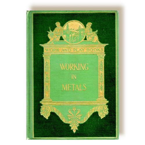 Table of Contents, Introduction, Tools, Work in Copper. Copper Trays, Papper Cutter, Nut Set, Hard soldering, Soft soldering, Candlestick, Csonce, Rose, Chalice, How-to, Hat Pin, How to Rivet, Electric Lamp with Shade, hinges in Copper, hinges in silver, Jewel Box, Finger Bowl, Crumb Tray, Tea Caddy, Vase, Bell, Bracket, Drawer Pulls, Finger Rings, Scarf Pins, Necklace, Brooch, Bracelet, Spoon, Frame, Watch Fobs, Napkin Rings, Silver Comb, Belt Buckles and Enameling. THE BLACKSMITHIS SHOP, Blacksmithing tools, Forging, Welding, Mild steel or soft steel, Hardening or Tempering, Toolmaking, Harden, Soften Steel, Forging Hand Hammers, Andirons, Fire Tools, Candlesticks, Hinges, Iron Brackets, Lamps, Lanterns, Iron Kettles, Umbrella Stand, Door Knockers, Plates, Handles. Illustrations, Even a Boy can Learn to Make a Horseshoe.