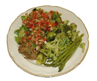 Portabello mushrooms stuffed with Sheri's beans topped with home made salsa and fresh onions, steamed vegatables and avacado slices.