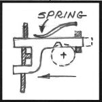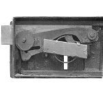 Another common lock made by smiths is the spring or "bear claw" lock. These are used on boxes, trunks and cabinets where you want the lid or door to automaticaly lock when closed. A simple leaf spring holds the bolt in position. The key just pushes the bolt to one side.