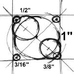 You want to draw a 1" circle, then center a 1" square on the circle, then layout four centers for 3/16" holes that are tangent to the corners of the square.