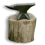 This old German anvil is setting on an oak stump that was trimmed to fit.