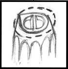 This is a touchmark punch I made and its impression. To make the punch required a "matrix" punch. Thats a punch that is used to make a part of another punch.