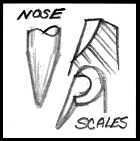 For "nazal passages" I use a tapered punch with a slightly rounded end. The "scale" punch sets material down to leave a raised scale.