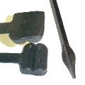 The two examples shown, the center-V and the spear point are common repetitive use tools that would work well under a flypress or heavy arbor press as well as forging hammers.