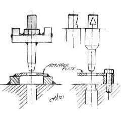 It is fitted with a "stripper plate" to hold the work down when the punch is pulled out.