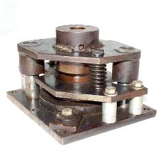 Diesets consist of an upper and lower plate with two or more guides and bushings. When punching is done a middle plate called a "stripper" is used for the work to react against as the punch is pulled out. Strippers can be static or spring loaded pressure pads. Pressure types are used to support thin or soft material that may tend to buckle or wrinkle when punched. The striping action can be by springs or by the press pulling up on its return stroke. Special die stripper springs are manufactured with heavy square wire in order to get the most spring force in the smallest space. When the press does the stripping the dieset either has a coupling adaptor bolted on the top plate OR a top plate with built in shank is used.