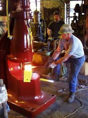 Vol.1 (May-June - JYH) Vol.2 ABANA Vol.3 Camp Fenby Vol.4 ABANA Late Vol. 5 PABA Edition Vol. 6 AFC Edition Page 2 Coverage of YOUR Event Page 3 Oklahoma comes to Virginia Page 4 Things from New Zealand (LEFT) "New" 500 pound Chambersburg Utility Hammer at Greenwood Ironworks. |