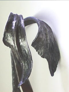 ![]() Samples forged on the EC-JYH. Above, two points in one inch square stock and a leaf by the Guru. Fancy leaves at top and to the right by Josh Greenwood. Besides these samples, in the three hours that Josh had to test the hammer he also forged the tools to make the leaves to the right! |