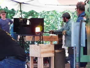 Scott Lankton heats his sword blade in preparation for forge welding.