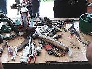 The early model 25# Little Giant power hammer from the power hammer rebuilding workshop. Hammer is to be placed in the Iron in the Hat contest. |