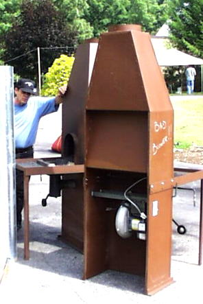 These side draft chiminey forges were all over the site and show up in many of the previous photos. They worked quite well and are a proven design. Note the large 10" (25cm) vent pipe (or is it 12"?). |