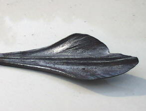 The tool shown at right is one of a set of dozens Josh developed for producing heavy forged leaves under an air hammer.