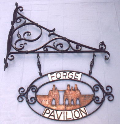 The copper portion is taken from a drawing of the Tannehill Furnace. The main scroll in the center of the hanger is 15ft long, the stock is 1/4" x 1 1/2" and there are over 500 man hours in the project. |