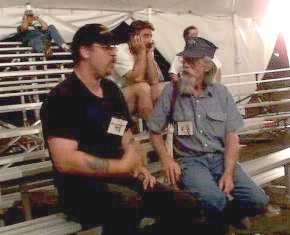 Bruce Wallace and Daryl Meier discussing Nazel Pneumatic hammers as Wednesday evening winds down.