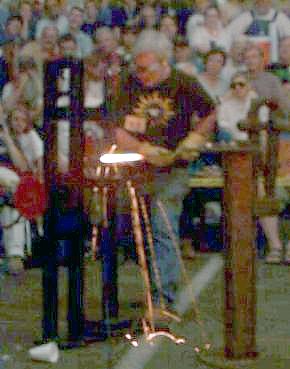 Mark Krause Self Contained air hammer built on the Nazel valving system. Dan Dreyer Electronic drive, spring helve hammer. William Harris Spring helve ABA "Rusty" Appalachain hammer. Maurice Ellis Mini air "6# Tac Hammer" |