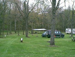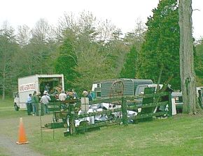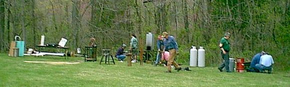 Prince William County, VA Saturday morning and as usual at Spring Fling, the Fairfax Wildlife Club is jumping. Ed Small is at site one doing a demonstration on the effects of quenching methods on different alloys of steel. The Williamsburg Blacksmiths are at site two. Friday site 2 is up and ready. Site 1 (below) is under construction. Virginia in the spring only has these perfect greens for a few days. |