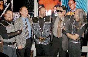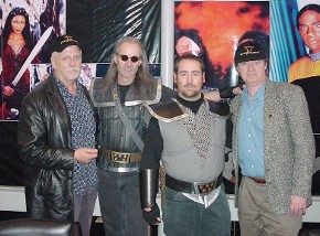 Andrew "Kiwi" Hooper (far right) excorting some Klingons at a Star Trek conference in New Zealand. Note the anvilfire caps!
