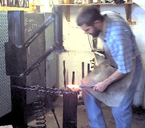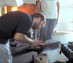 Among the attendees where four art students from Pretoria University who, even though they have never forged before, quickly got into the swing and showed their creativity. Left and below, Marius Burger (Tiaan's brother) working on a poker. |
