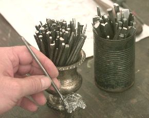 Carving and graving tools by the dozen.