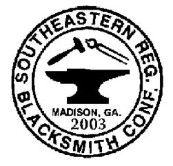 Madison, Georgia, May 15, 16, 17, 2003 Register by April 30th and SAVE 10 BUCKS! Southeastern Regional Blacksmith Conference Thursday Evening, May 15, Friday May 16, & Saturday, May 17 Lion's Club Fairgrounds, Madison, Georgia THE CONFERENCE SITE We will hold the 2003 Southeastern Regional Blacksmith Conference at the Madison Lion's Club Fairgrounds in Madison, Georgia. The site has a large, covered, open-sided barn with bleacher seating for comfortable blacksmithing demonstrations in any weather. The fairgrounds' air-conditioned main building accommodates everyone for Registration, Meals, the Auction, the Family Programs, and other indoor activities. The main building and its snack bar opens at 7 am. WAFFLE HOUSE will cater breakfast and lunch both days with a shortened menu at their regular economical prices. The primitive camping area is near the main building and inside the fence for security. There are no hookups but the fairground has water and restrooms. Ask about camping at the gate. CONFERENCE REGISTRATION Mail the enclosed registration form with your fees or register at the door. Register by April 30 and save $10. Do it now! ABANA and ABANA Affiliate members, senior citizens, spouses, and one-day attendees get reduced rates. See the registration form for details. The registration desk at the conference site opens at Noon on Thursday and at 7 am on Friday and Saturday. THURSDAY EVENING BANQUET We will hold a banquet at 7 pm Thursday, May 15 in the main building. The banquet will be an extensive buffet of home-cooked food. The food will be good and there will be plenty of it. The cost is $10 per person. Enclose payment with your registration or pay at the door. AUCTION OF DONATED ITEMS On Friday night we will auction pieces of donated ironwork, tools, and other items of interest to blacksmiths. The auction is always one of the high points of the conference entertainment. Take advantage of this chance to pick up tools and handmade ironwork for your collection. Auctioneers for the evening will be Anthony Goodrum and Tim Ryan. Bring something to donate to the auction: your work, tools, books, etc., anything that will help raise money to support the conference. The auction provides a big portion of the money needed to put on the conference and we need your support and donations to make it a success. On Saturday we will have a short auction to sell pieces made by the demonstrators during the conference, plus any items donated on Saturday. If you can't make it to the conference but would like to donate something for the auction, contact Allan Kress, (256) 775-1575, to make arrangements for shipping. IRONWORK DISPLAY An exhibit of members' work will be displayed in the main building. Bring something to show off your skills and artistic abilities. The public will be able to see this part of the conference, so label your pieces and display them with pride. Contact Jim Garrett, (770) 919-7376, of Ocmulgee Blacksmith Guild for details. TAILGATE TOOL SALES The Southeastern Regional Conference has always had one of the largest tailgate tool and rust sales areas. Bring your extra stuff or your extra cash to do some horse trading on blacksmithing and related equipment. The tailgate tool sales area will be open throughout the conference. Open to anyone who has registered for the conference. For a set-up location, contact Clyde Payton or any member of the Florida Artist Blacksmiths Association or Ocmulgee members providing security at the gate. BLACKSMITHING CLASSES There will be two levels of blacksmithing classes taught this year: Beginning/Intermediate blacksmithing for adults and Beginning blacksmithing for youngsters ages 8-15 (Parents may accompany a child). The fee for each class will be $10 per student per 4-hour session. The Appalachian Area Chapter will provide teachers. FAMILY PROGRAM The conference has invited four crafts instructors to hold classes in a variety of skills for any member of the family. There is a description of courses on page XXX. A separate registration form is on page 9. Note: Space is limited in the Blacksmithing Classes and the Family Program Classes. Early registration is recommended to help ensure a place in the classes you desire. 2003 Conference Contact People Conference Chairman Conference Treasurer Auction Contact Barry L. Myers Bill & Brenda Pate Alan Kress 1847 Pisgah Rd. 1611 Oakley Road 889CountyRoad1464 North Augusta, SC 29841 Castle Hayne, NC 28429 Cullman, Al 35058 803-279-0363 910-763-7326 (256) 775-1575 Conference Registrar Family Program Tailgate Sales Karen Wheeler Cindy Alexander Clyde Payton 10250 NE 50th Street 922 Lakeside Dr. Rte 3 Box 124 D Payton Rd Bronson, Florida 32621 Durham, NC 27712 Monticello, Fl 32344 352-486-4370 919-471-0184 850-997-3627 __________________________________________________________________________________________ 2003 Conference Southern Blacksmith Association Sponsors Alabama Forge Council Alex Bealer Blacksmiths Assoc. of GA Appalachian Area Chapter Alan Kress, President Dan Tull, President Bruce Gilles, President 889CountyRoad1464 109 Laurelwood Drive 643 Shasteen Ridge Cullman, Al 35058 Newnan, GA 30263-4053 Lynchburg, TN 37352 (256) 775-1575 770-253-8396 931-759-4615 Florida Artist Blacksmith Assoc. North Carolina Chapter Ocmulgee Blacksmiths Guild Bob Jacoby, President Jim Alexander, President Jim Garrett, President 2635WrightsonDrive 922 Lakeside Dr. 5653ForkwoodTrace Jacksonville, Fl 32223 Durham, NC 27712 Acworth, Ga 30101 (904) 288-0584 919-477-8701 (770) 919-7376 Philip Simmons Artist Blacksmith Guild Host Chapter Bob Hill, President 9744 Plantersville Road Georgetown, SC 29440 843-546-5483 MOTEL INFORMATION When contacting motels for reservations, be sure to tell them that you are attending the Southeastern Regional Blacksmith Conference. The preferred motel for the Conference is the Ramada Inn; all of the demonstrators and Conference Staff will be staying there. Most motels have agreed to reduce rates fo