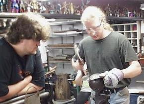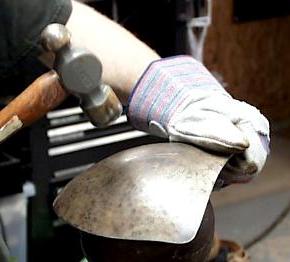 Charley plannishing a shoulder plate using a ball pien hammer.