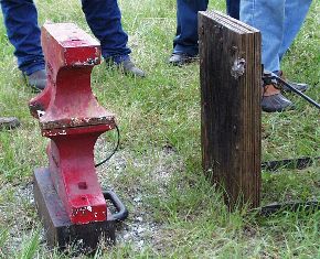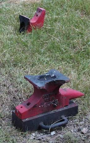 These anvils were purchased new for the specific purpose of being shot. Every so often they are inspected by X-ray to be sure they have not developed any cracks. |