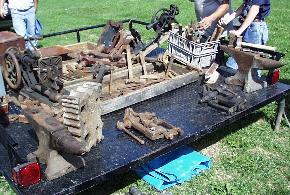 Tools are what the Quad State Roundup has been about for years. There were more tools here than I have every seen anywhere else in my life. To the left is a trailer loaded with a complete forge with draft starter and intake air heater, sand blaster, tool chest, tongs hammers and more. . . |