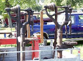There are TWO wagon tongue vises in this collection. In the East I had only seen one of these in 5 years (I bought it). There was at least six at Quad State this weekend. I bought a very nice old style sheet metal working hammer from this fellow. It was the only one of its type I saw all weekend. |