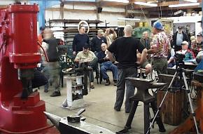 Master Blacksmith, an artist blacksmith from Israel who trained with Uri Hofi demonstrated power hammer technique on the Big BLU.