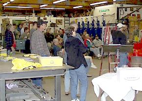 Klingspor Abrasives deserves a huge THANK YOU! They gave away hundreds of dollars worth of abrasives (remains in foreground left) and donated boxes full of disks and belts to the iron in the hat. |