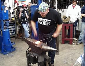 Steve Feinstein of Euroanvils was there and sold most of this load! The big 500 pound anvil being used in most of the days demonstrations is a Euroanvil. |