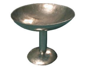 The Finished Project After making the large bowl Sean wanted to make something out of it so he cut two more circles and dished one. With a little help from Jeff a piece of pipe was found and a bolt. . and here it IS. Its not armor but it is used the same processes.