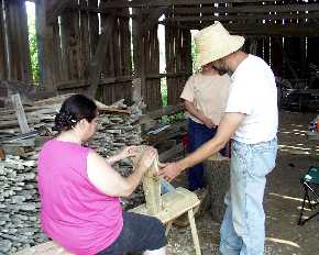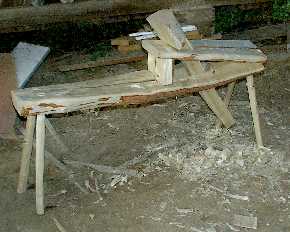 Legs were shaped using the instructors horse. Traditional methods of splitting, hewing and shaping were used.